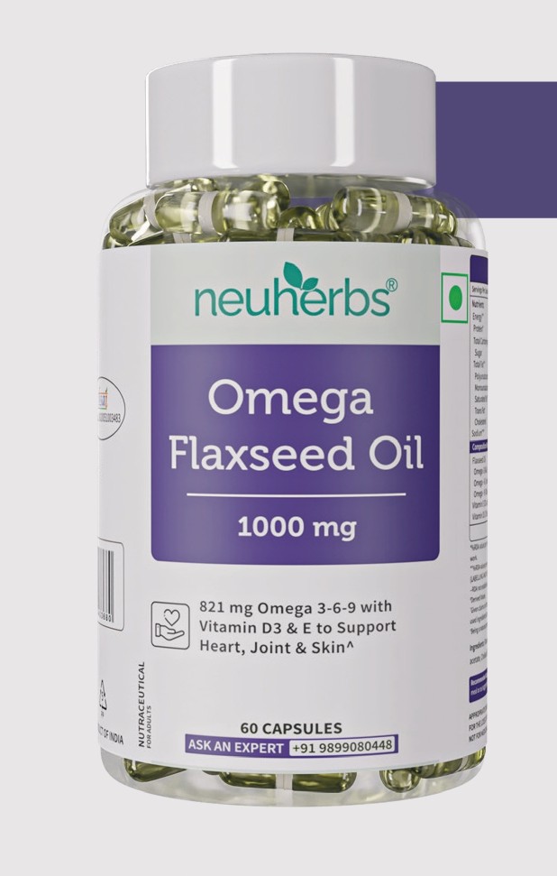 • Complete Omega Care- neuherbs Omega Flaxseed Oil Capsule 1000mg offering 821 mg of Omega 3, Omega 6, & Omega 9 per serving made from pure flaxseeds for heart, skin & joint health.